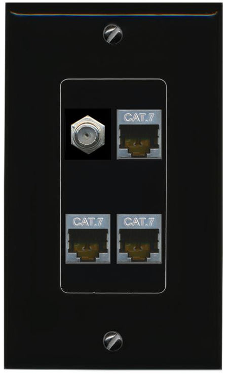 RiteAV 3 CAT7 COAX Wall Plate Decorative [Black]