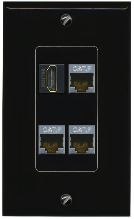 RiteAV 3 CAT7 HDMI Wall Plate Decorative [Black]