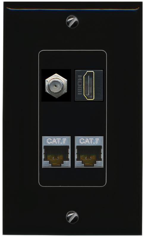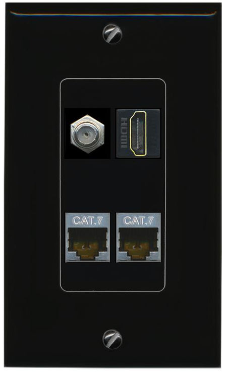 RiteAV 2 CAT7 COAX HDMI Wall Plate Decorative [Black]