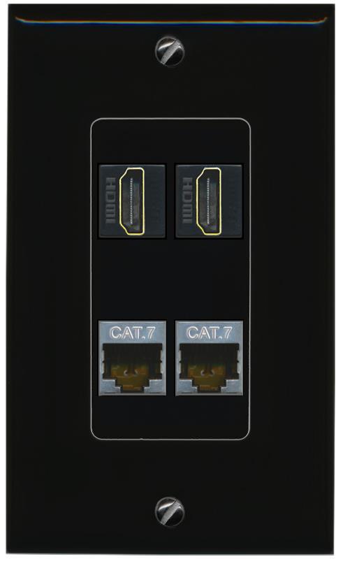 RiteAV 2 CAT7 2 HDMI Wall Plate Decorative [Black]