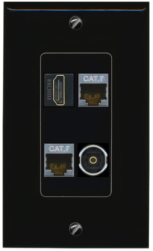 RiteAV 2 CAT7 HDMI TOSLINK Wall Plate Decorative [Black]