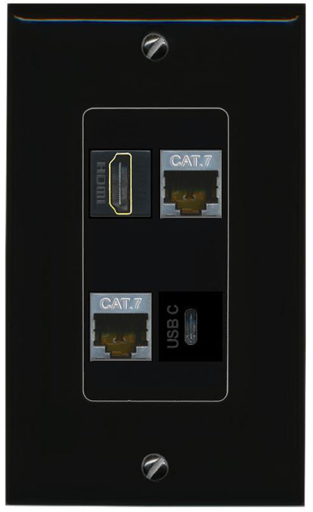 RiteAV 2 CAT7 HDMI USBC Wall Plate Decorative [Black]