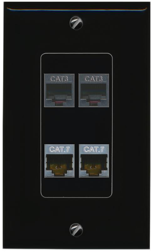 RiteAV 2 CAT7 2 PHONE Wall Plate Decorative [Black]