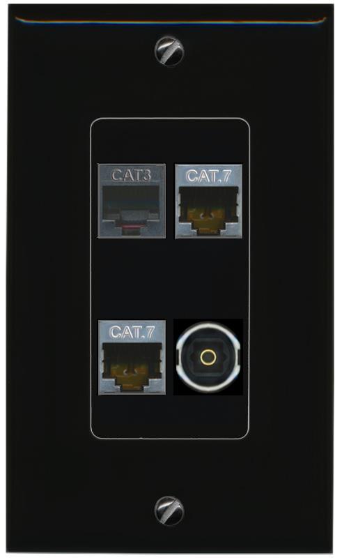 RiteAV 2 CAT7 PHONE TOSLINK Wall Plate Decorative [Black]