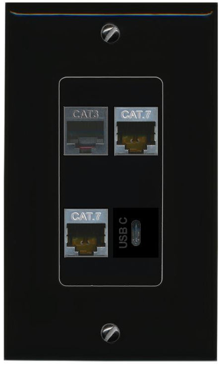 RiteAV 2 CAT7 PHONE USBC Wall Plate Decorative [Black]