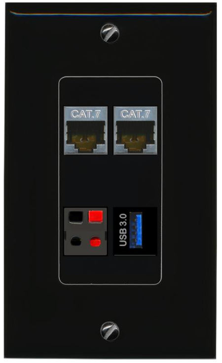 RiteAV 2 CAT7 SPEAKER USB-3 Wall Plate Decorative [Black]