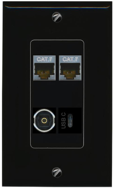 RiteAV 2 CAT7 TOSLINK USBC Wall Plate Decorative [Black]