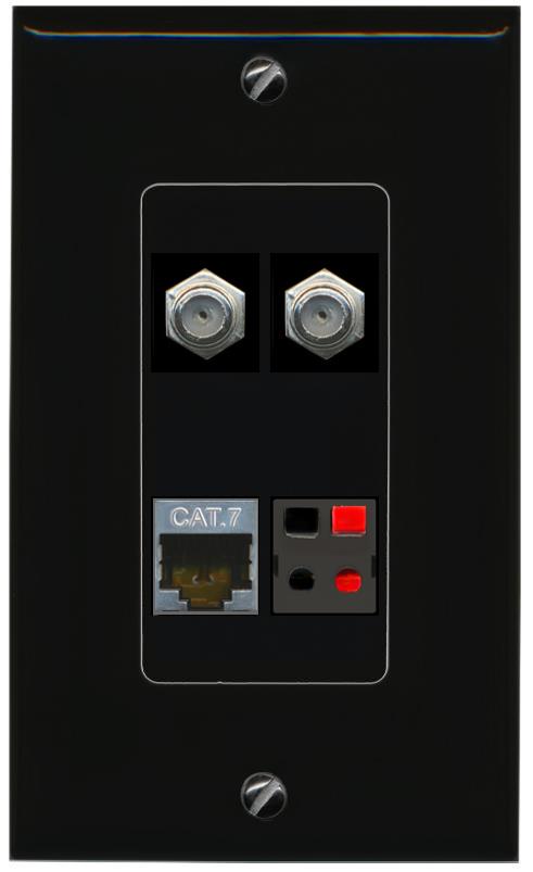 RiteAV CAT7 2 COAX SPEAKER Wall Plate Decorative [Black]
