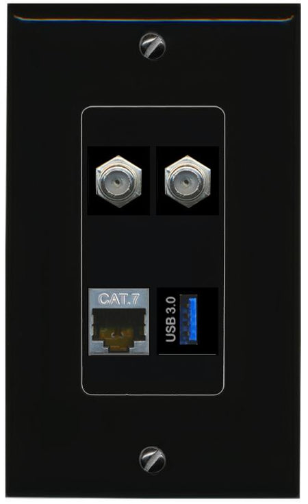 RiteAV CAT7 2 COAX USB-3 Wall Plate Decorative [Black]