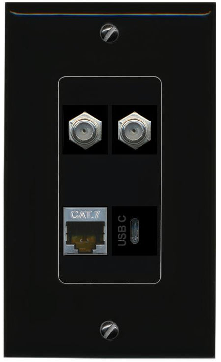 RiteAV CAT7 2 COAX USBC Wall Plate Decorative [Black]