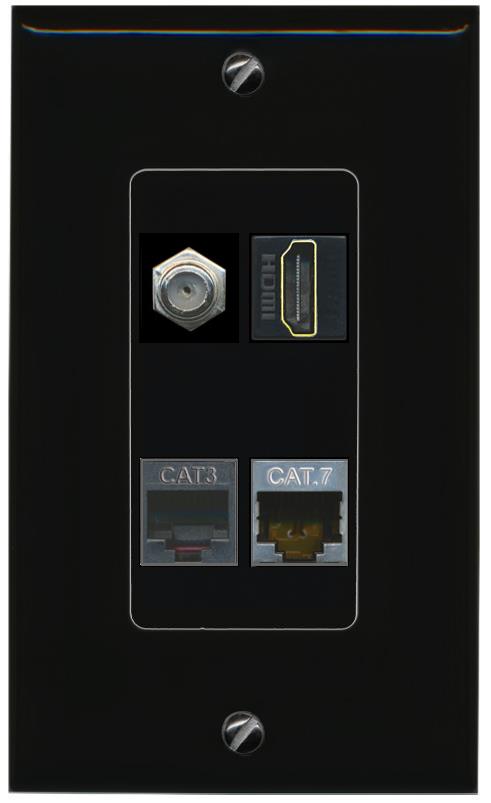 RiteAV CAT7 COAX HDMI PHONE Wall Plate Decorative [Black]