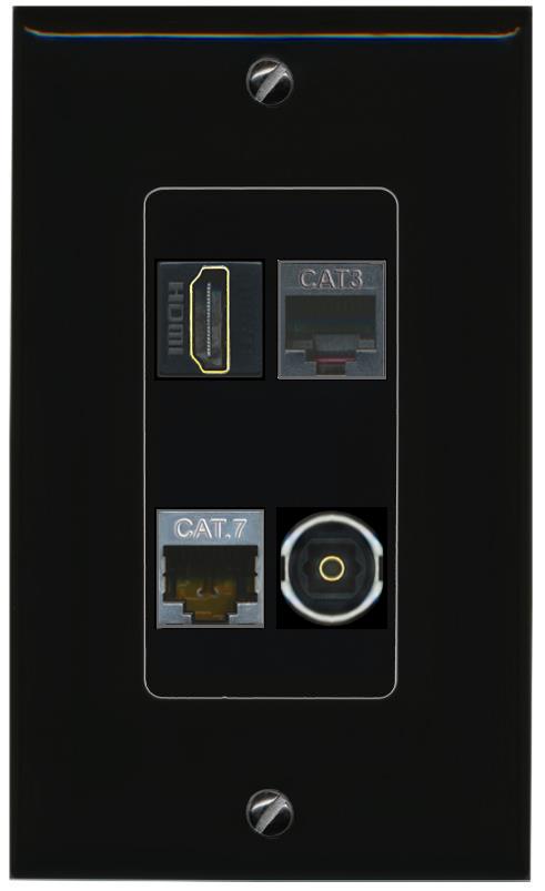 RiteAV CAT7 HDMI PHONE TOSLINK Wall Plate Decorative [Black]