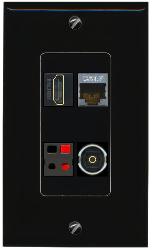 RiteAV CAT7 HDMI SPEAKER TOSLINK Wall Plate Decorative [Black]