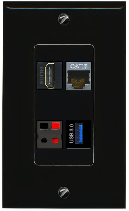 RiteAV CAT7 HDMI SPEAKER USB-3 Wall Plate Decorative [Black]