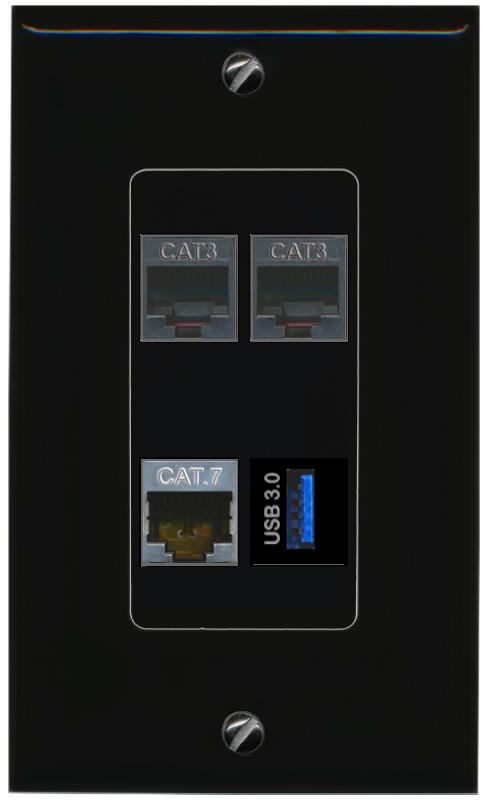 RiteAV CAT7 2 PHONE USB-3 Wall Plate Decorative [Black]