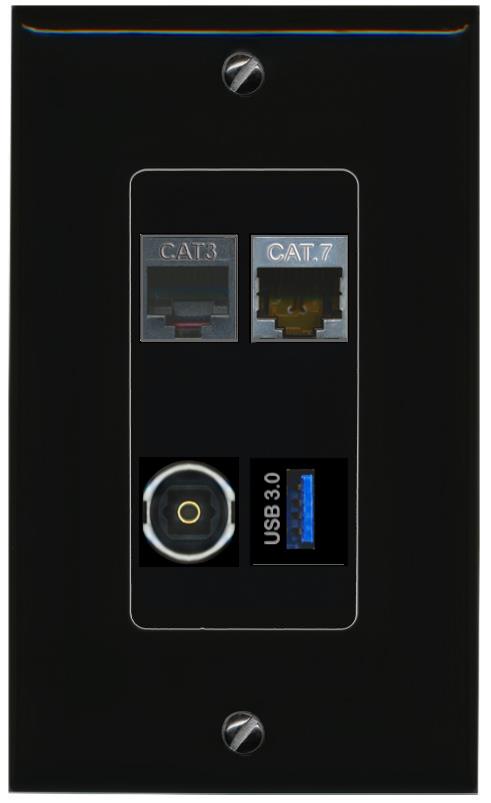 RiteAV CAT7 PHONE TOSLINK USB-3 Wall Plate Decorative [Black]
