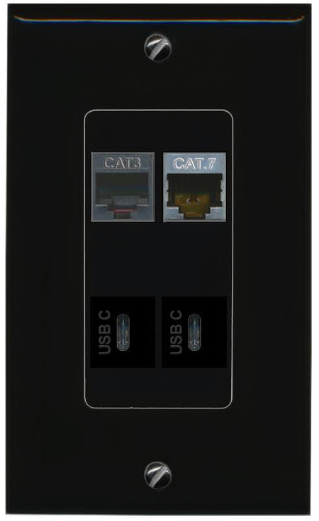 RiteAV CAT7 PHONE 2 USBC Wall Plate Decorative [Black]