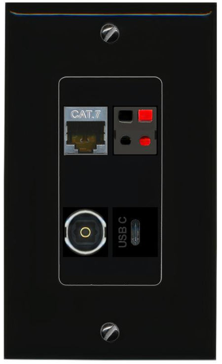 RiteAV CAT7 SPEAKER TOSLINK USBC Wall Plate Decorative [Black]