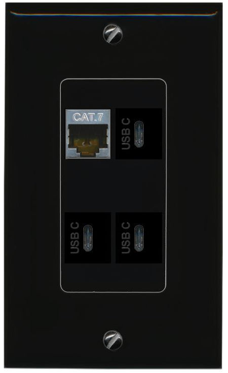 RiteAV CAT7 3 USBC Wall Plate Decorative [Black]