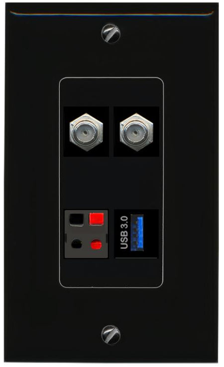RiteAV 2 COAX SPEAKER USB-3 Wall Plate Decorative [Black]