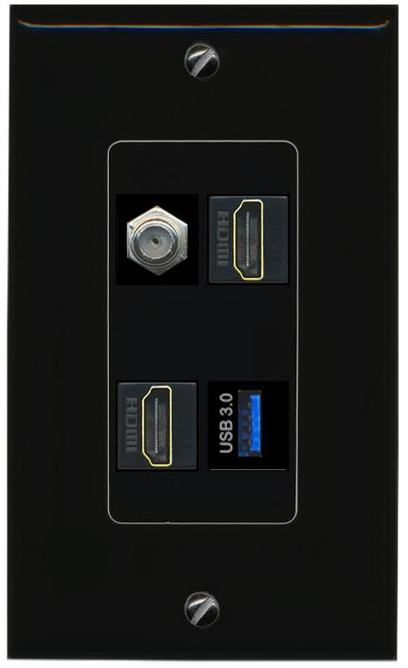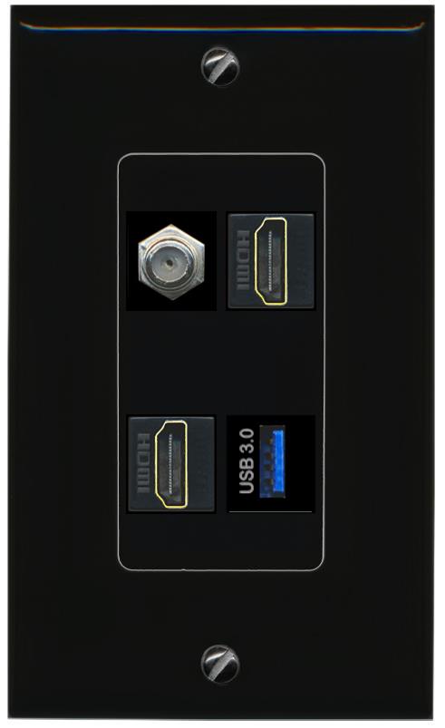 RiteAV COAX 2 HDMI USB-3 Wall Plate Decorative [Black]