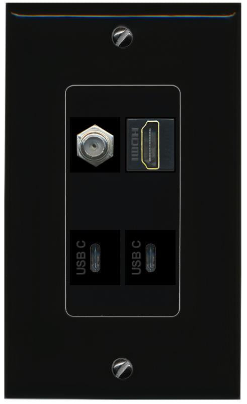 RiteAV COAX HDMI 2 USBC Wall Plate Decorative [Black]