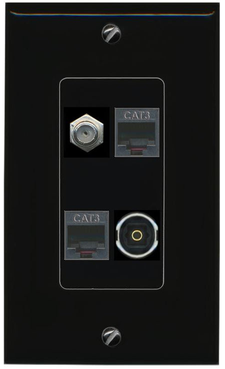 RiteAV COAX 2 PHONE TOSLINK Wall Plate Decorative [Black]