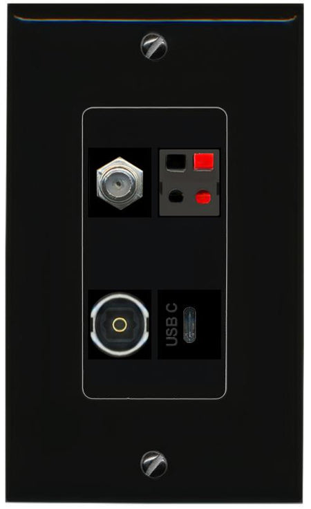 RiteAV COAX SPEAKER TOSLINK USBC Wall Plate Decorative [Black]