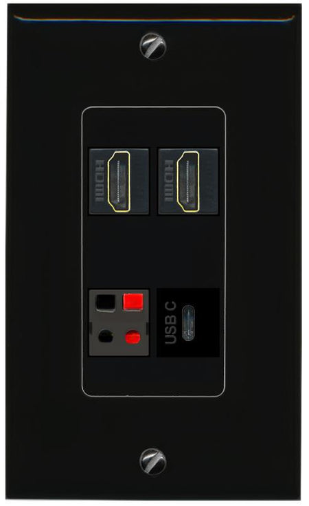 RiteAV 2 HDMI SPEAKER USBC Wall Plate Decorative [Black]