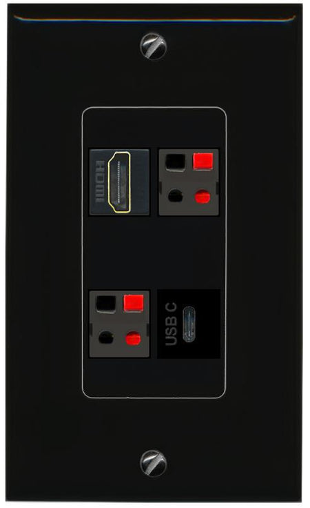 RiteAV HDMI 2 SPEAKER USBC Wall Plate Decorative [Black]