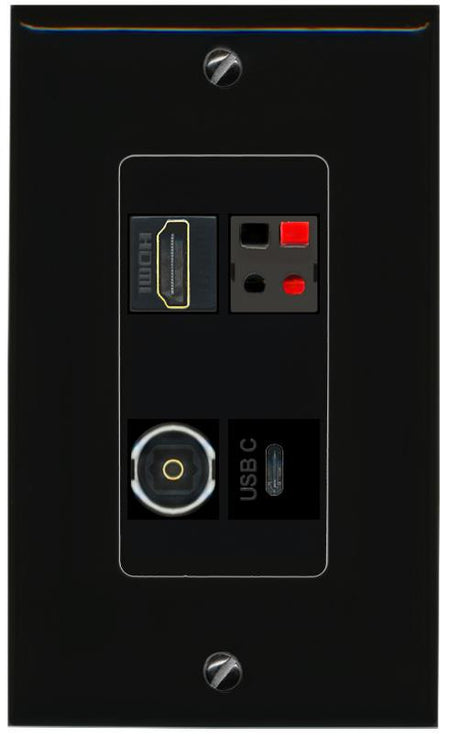 RiteAV HDMI SPEAKER TOSLINK USBC Wall Plate Decorative [Black]