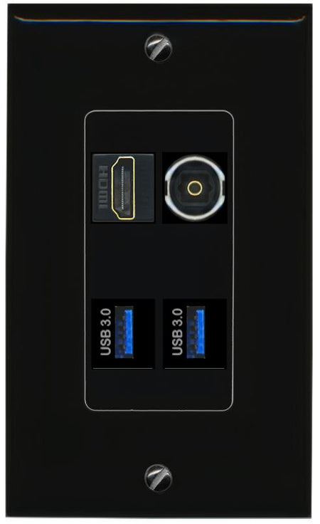 RiteAV HDMI TOSLINK 2 USB-3 Wall Plate Decorative [Black]