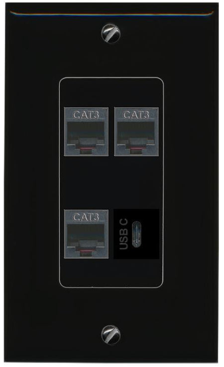 RiteAV 3 PHONE USBC Wall Plate Decorative [Black]