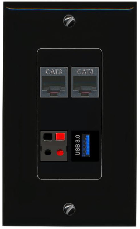 RiteAV 2 PHONE SPEAKER USB-3 Wall Plate Decorative [Black]
