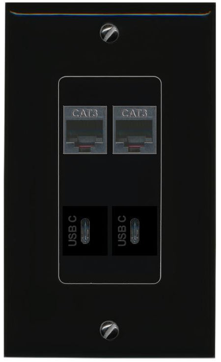 RiteAV 2 PHONE 2 USBC Wall Plate Decorative [Black]