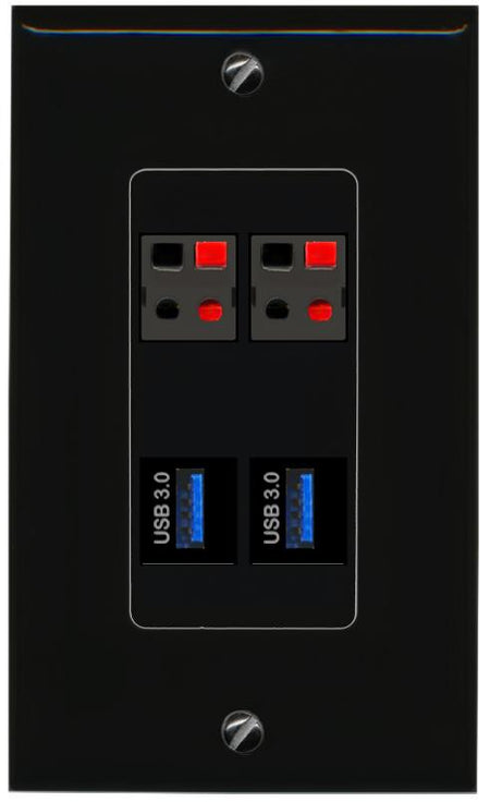 RiteAV 2 SPEAKER 2 USB-3 Wall Plate Decorative [Black]