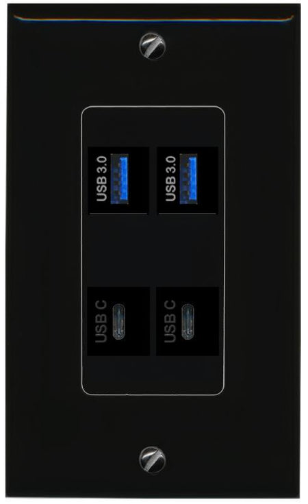 RiteAV 2 USB-3 2 USBC Wall Plate Decorative [Black]