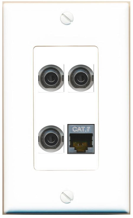 RiteAV 3 3.5mm CAT7 Wall Plate Decorative [White]