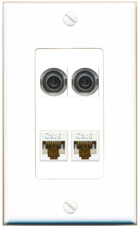 RiteAV 2 3.5mm 2 CAT6 Wall Plate Decorative [White]