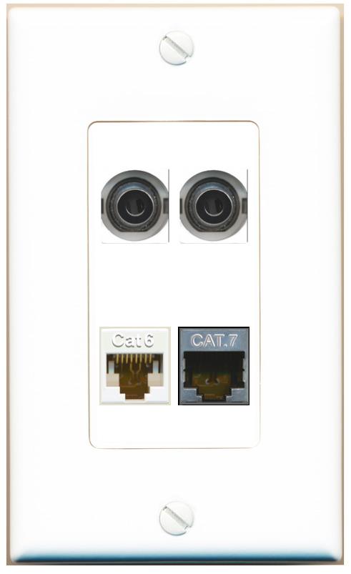 RiteAV 2 3.5mm CAT6 CAT7 Wall Plate Decorative [White]