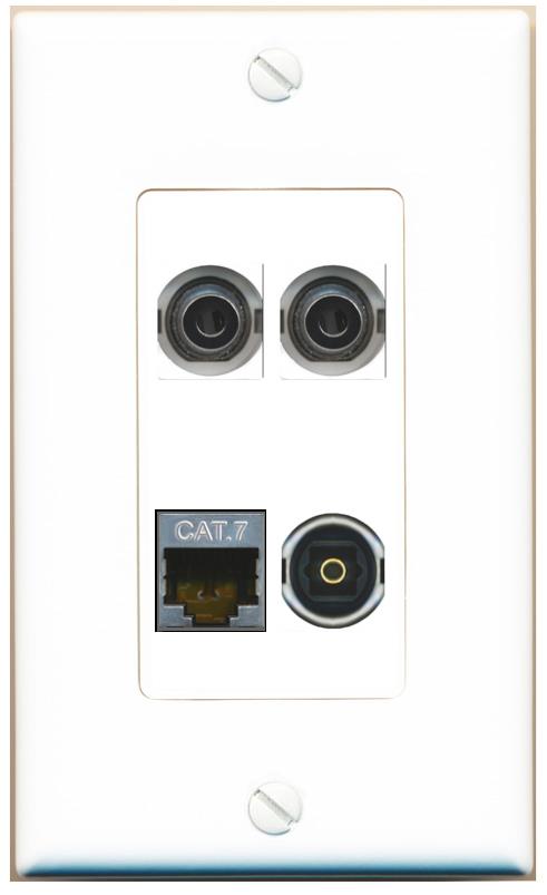 RiteAV 2 3.5mm CAT7 TOSLINK Wall Plate Decorative [White]