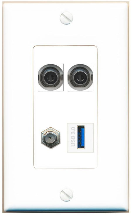 RiteAV 2 3.5mm COAX USB-3 Wall Plate Decorative [White]