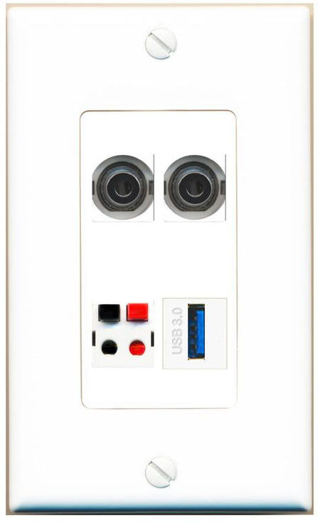 RiteAV 2 3.5mm SPEAKER USB-3 Wall Plate Decorative [White]