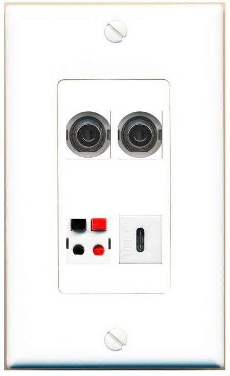 RiteAV 2 3.5mm SPEAKER USBC Wall Plate Decorative [White]