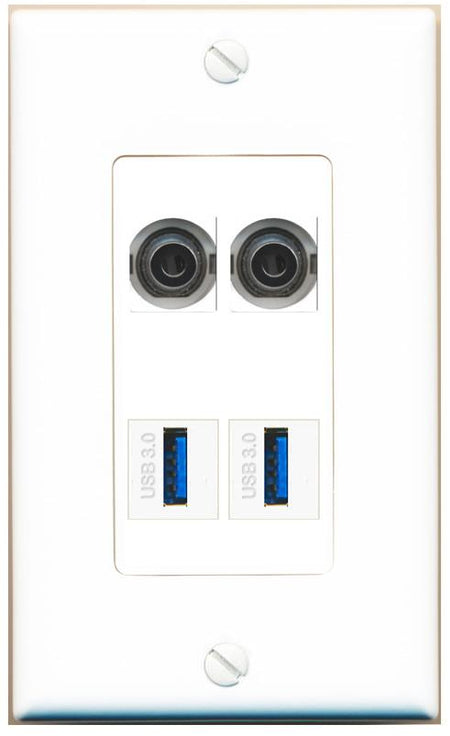 RiteAV 2 3.5mm 2 USB-3 Wall Plate Decorative [White]