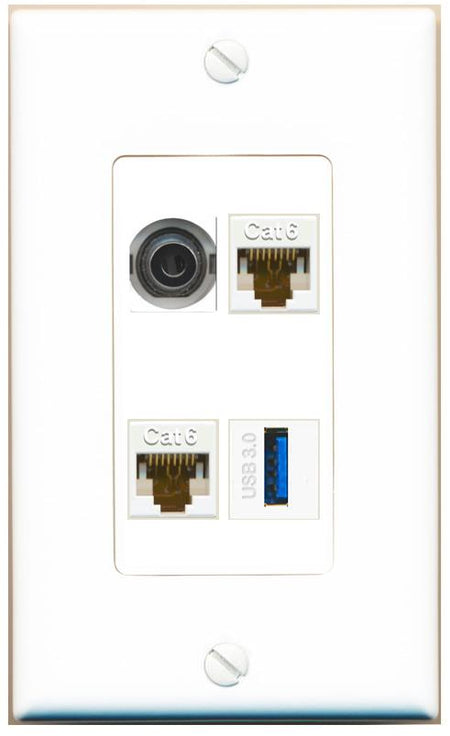 RiteAV 3.5mm 2 CAT6 USB-3 Wall Plate Decorative [White]