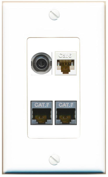 RiteAV 3.5mm CAT6 2 CAT7 Wall Plate Decorative [White]