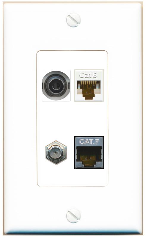RiteAV 3.5mm CAT6 CAT7 COAX Wall Plate Decorative [White]