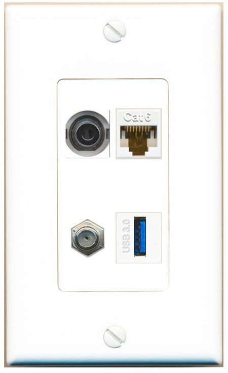 RiteAV 3.5mm CAT6 COAX USB-3 Wall Plate Decorative [White]