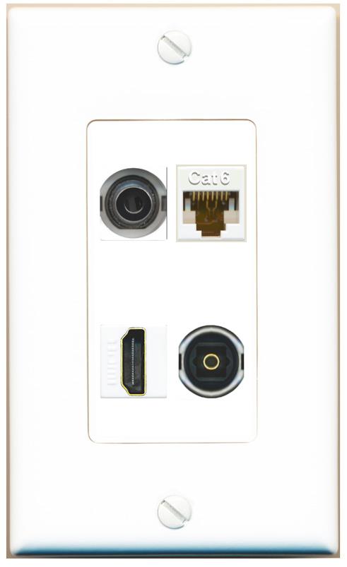 RiteAV 3.5mm CAT6 HDMI TOSLINK Wall Plate Decorative [White]
